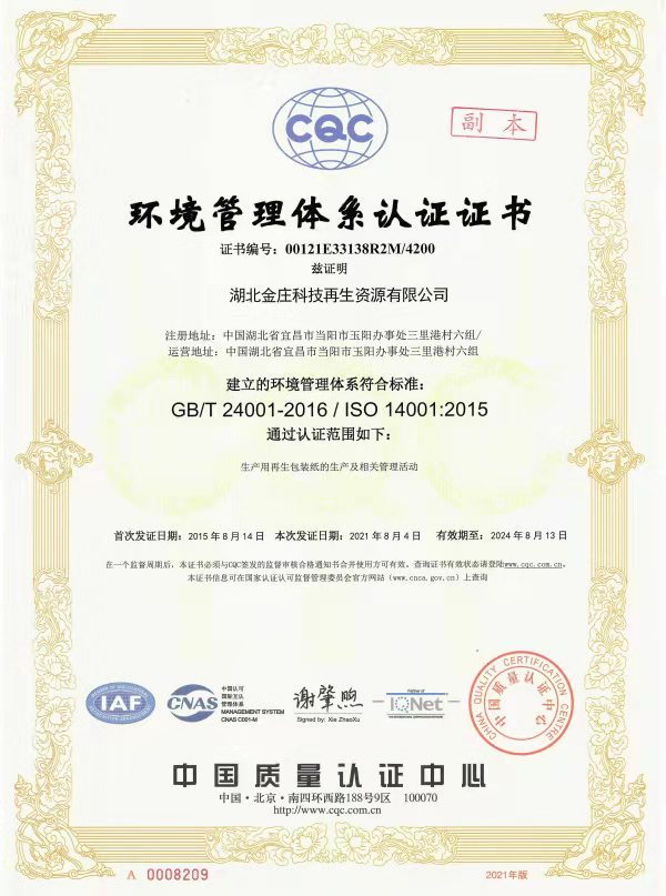湖北金莊科技再生資源有限公司是以生產再生包裝紙和為工業園區集中供熱的資源綜合利用加工服務型企業。公司位于當陽市金橋工業園,成立于2000年,注冊資本15486.72萬元,占地面積近400畝,現有員工500余人。 自成立以來,公司始終堅持“誠信、創新、共贏”的經營理念,努力踐行“資源再生綜合利用,堅持綠色能源可持續發展,以為社會提供綠色可持續穩定適用的產品為己任”的經營方針。
